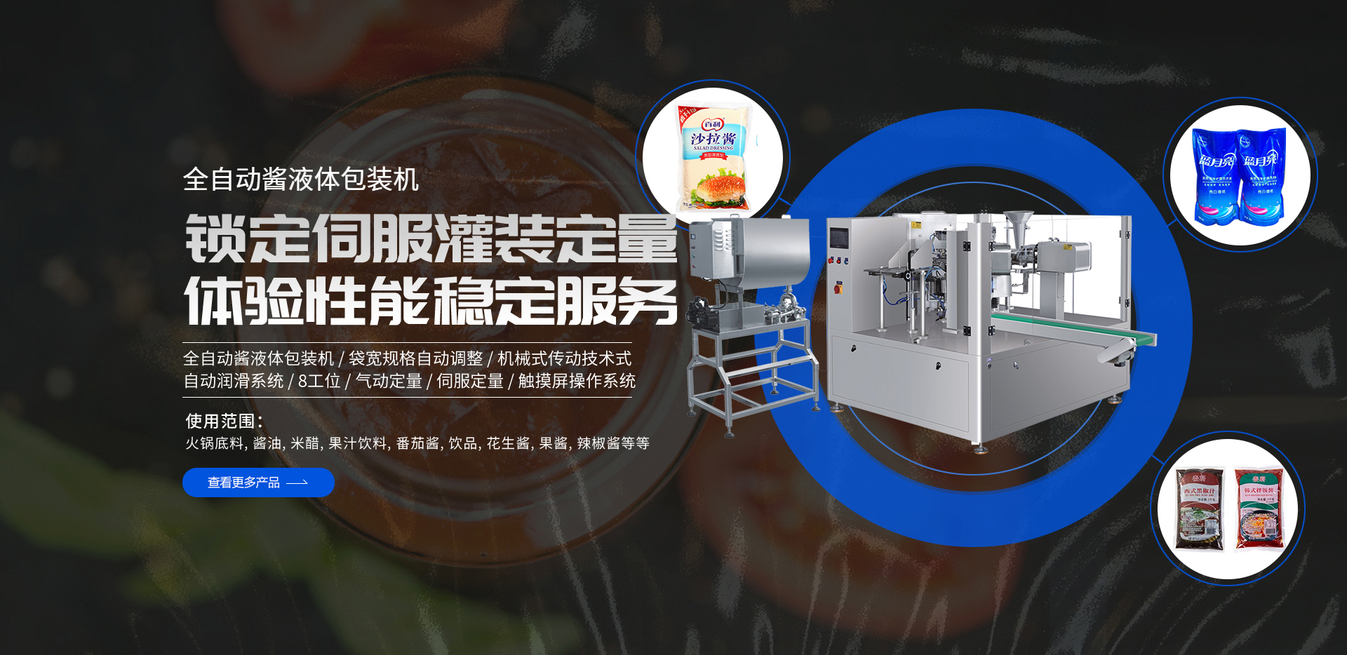 以上多種不同功能的包裝生產(chǎn)線設(shè)備(粉末包裝機(jī)、給袋式包裝機(jī)、全自動(dòng)包裝機(jī)、顆粒|液體|食品|醬腌菜包裝機(jī)),請(qǐng)根據(jù)需求選擇,如有疑問(wèn)請(qǐng)聯(lián)系我們的顧問(wèn)